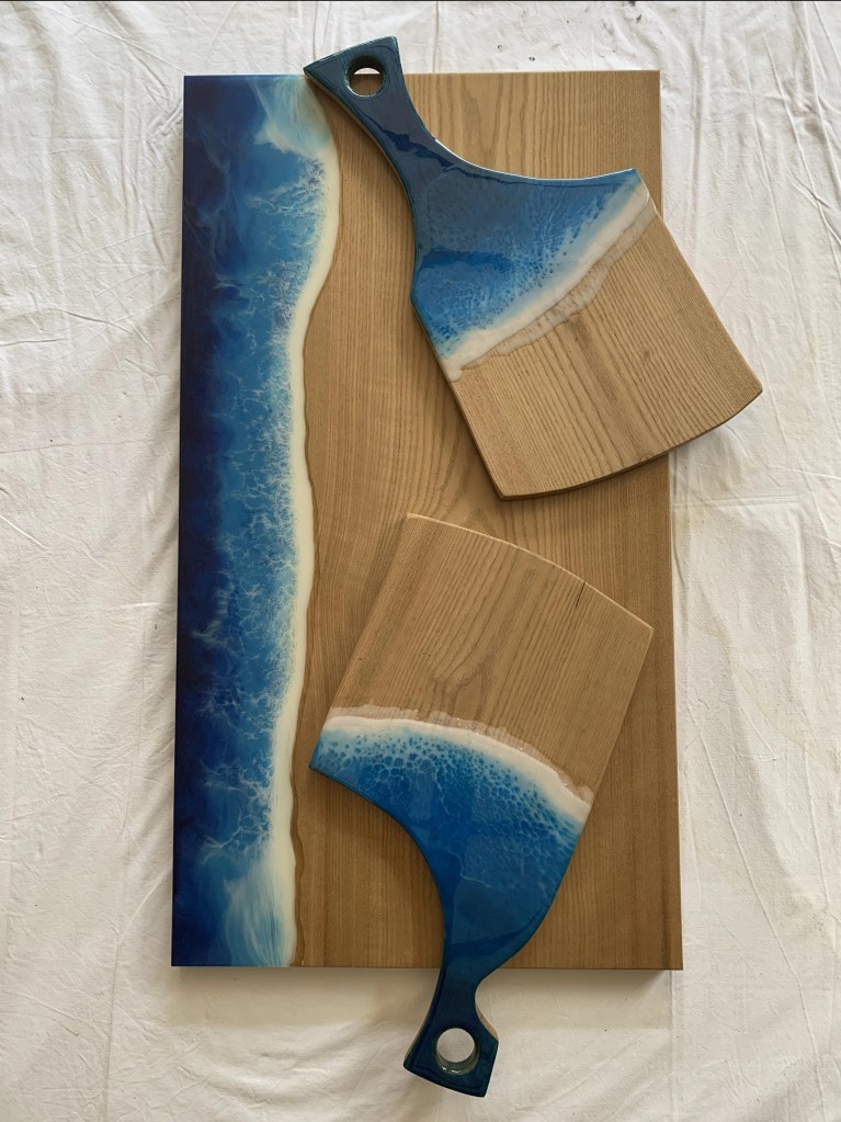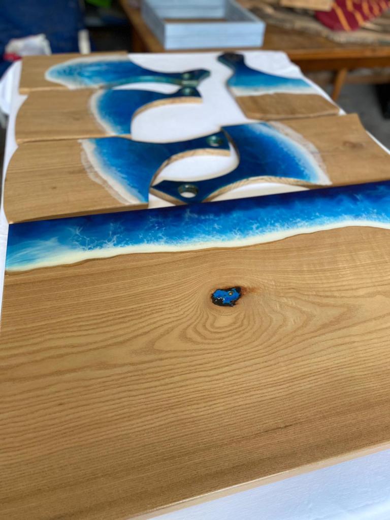 Benvenuti nel mondo incantato dell’effetto mare, dove la bellezza naturale si fonde con l’arte del design. Questa tecnica sorprendente e affascinante consiste nell’incorporare sfumature di resina in pezzi di legno, creando opere d’arte che evocano le onde, la schiuma e i riflessi cangianti dell’oceano. Ogni pezzo cattura l’essenza del mare, trasportando la sua energia vitale direttamente nel vostro spazio quotidiano. Che si tratti di un tavolo da pranzo che sembra galleggiare su un’onda, di un vassoio che ricorda le maree che si ritirano o di un quadro che cattura l’infinita vastità dell’oceano, l’effetto mare trasforma ogni ambiente in un’oasi di serenità e bellezza.